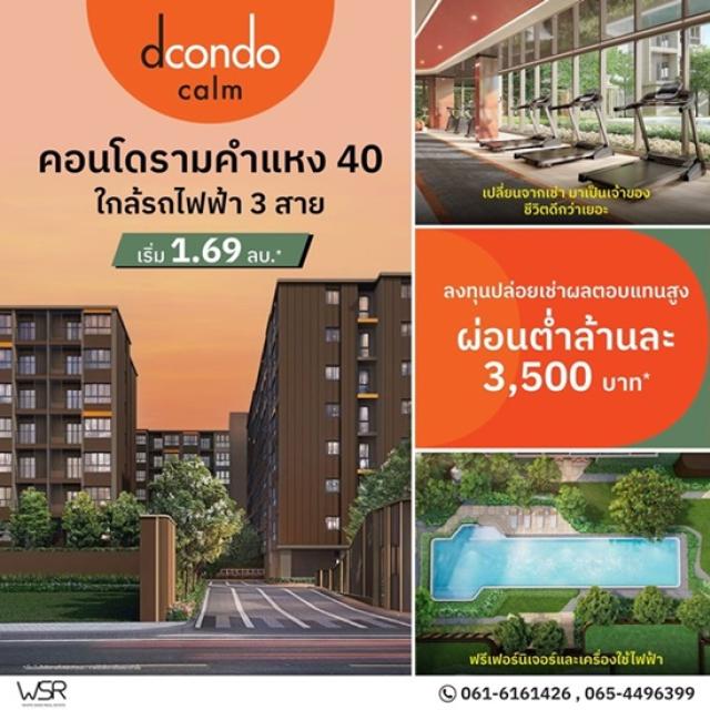 ชื่อโครงการ : ขายคอนโด Dcondo Calm Ramkhamhaeng 40 แต่งครบ พร้อมอยู่ทันที ทำเลทองรามคำแหง ฟรี เฟอร์นิเจอร์ Built-in โทร 061-6161426