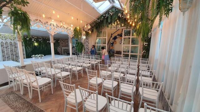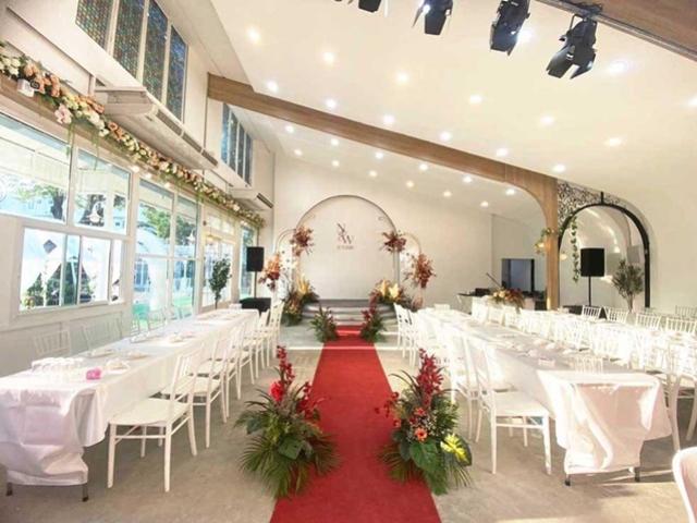 Pracha Uthit-WatKhuSang Rd. near Big C Food Place Bangkok 2-story wedding venue for rent with 3packages over 400sqm of space both outdoor and indoor Parking for 50 cars with a shady atmosphere sweet and gentle adding to the romance in the ThungKhru area starting at 24,999baht.