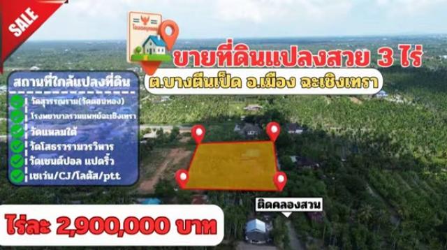 ขายที่ดินแปลงสวย พิกัด ต.บางตีนเป็ด อ.เมือง จ.ฉะเชิงเทรา