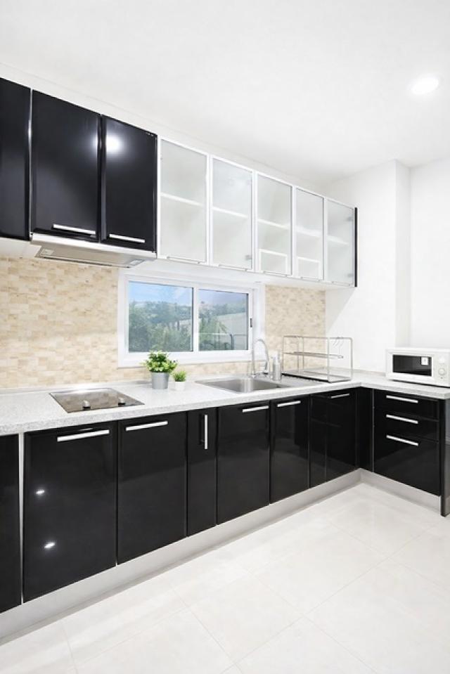 มี 3 ห้องนอน 3 ห้องน้ำ พร้อมเคาน์เตอร์ครัว และพื้นที่นั่งเล่นเป็นสัดส่วน